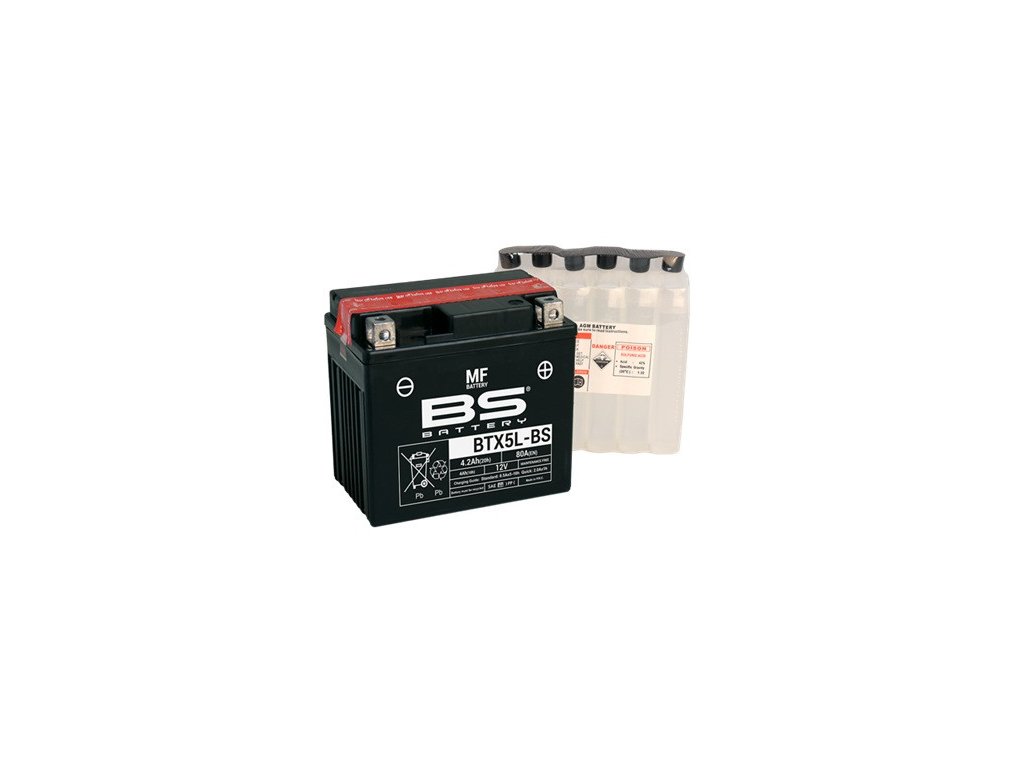 Bezúdržbový akumulátor (VRLA, AGM za sucha nabitý), značení dle normy JIS YTX5L-BS, 12V 4Ah CCA 80 A, Rozměry 113x70x105mm