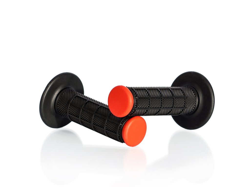 Dvoubarevné rukojeti pro motokros a enduro, černá-červená, levá+pravá, half-waffle
