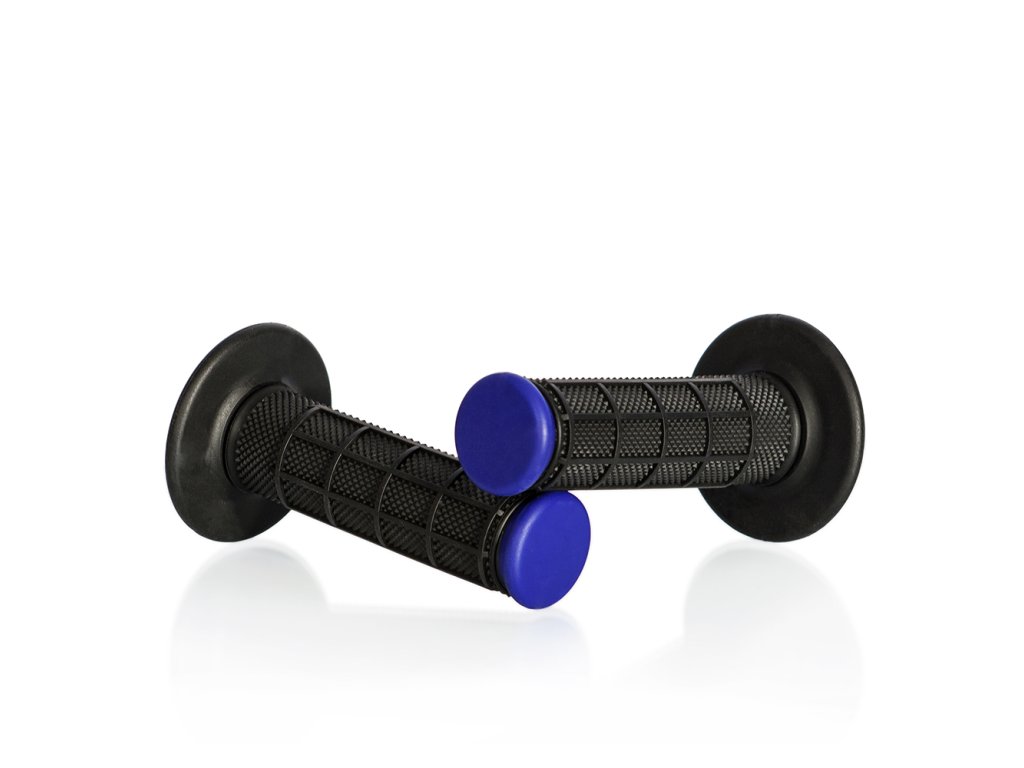 Dvoubarevné rukojeti pro motokros a enduro, černá-modrá, levá+pravá, half-waffle