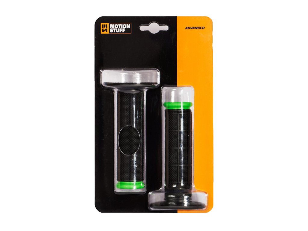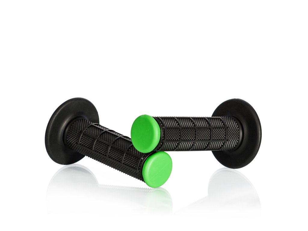 Dvoubarevné rukojeti pro motokros a enduro, černá-zelená, levá+pravá, half-waffle